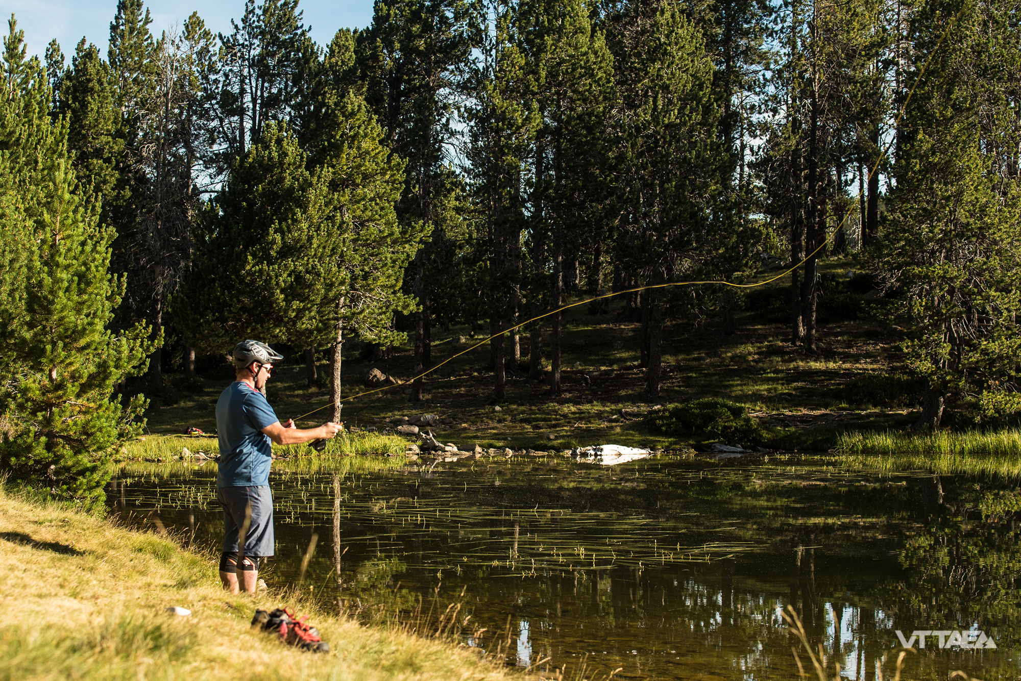 Dans l’après-midi du mercredi, Thomas Moret (Designer de la marque) se joint à nous pour attaquer notre périple mêlant VTT, bonne humeur et pêche à la mouche. Objectif de la fin d’après-midi, atteindre le refuge Estany de la Nou via le Pic Negre.