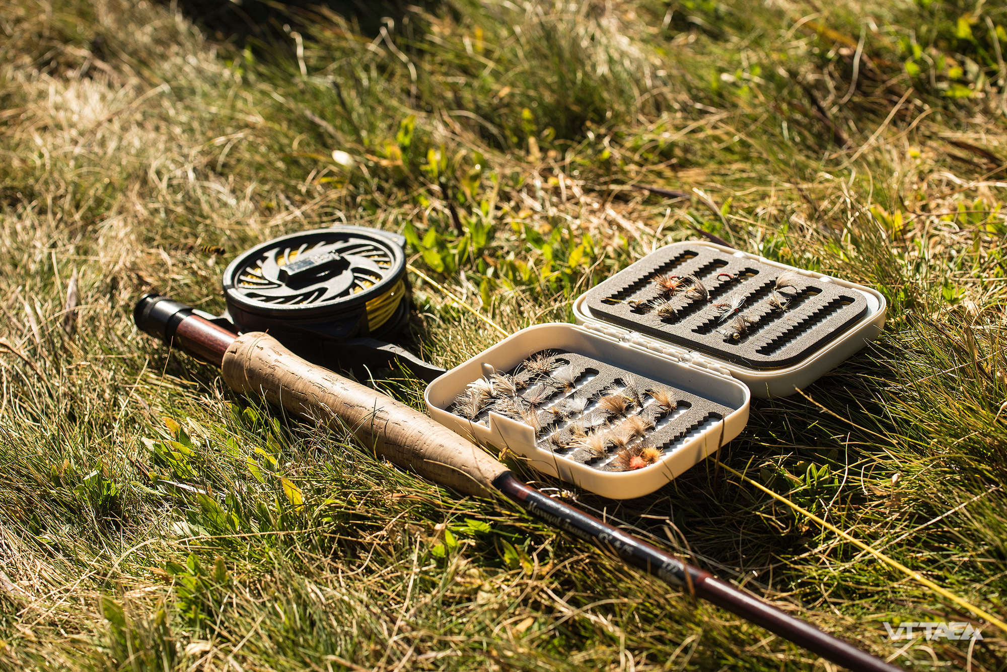Les gros pneus en 2.6 on quelque chose de plus : ils gomment les changements d’adhérence et autres trajectoires aléatoires qui débouchent bien souvent dans des ornières. Easy… C’est l’heure de fêter ça au bord du lac, les canettes sont dans l’eau fraîche. Nicolas prépare la canne et sa mouche. Ca va fouetter.