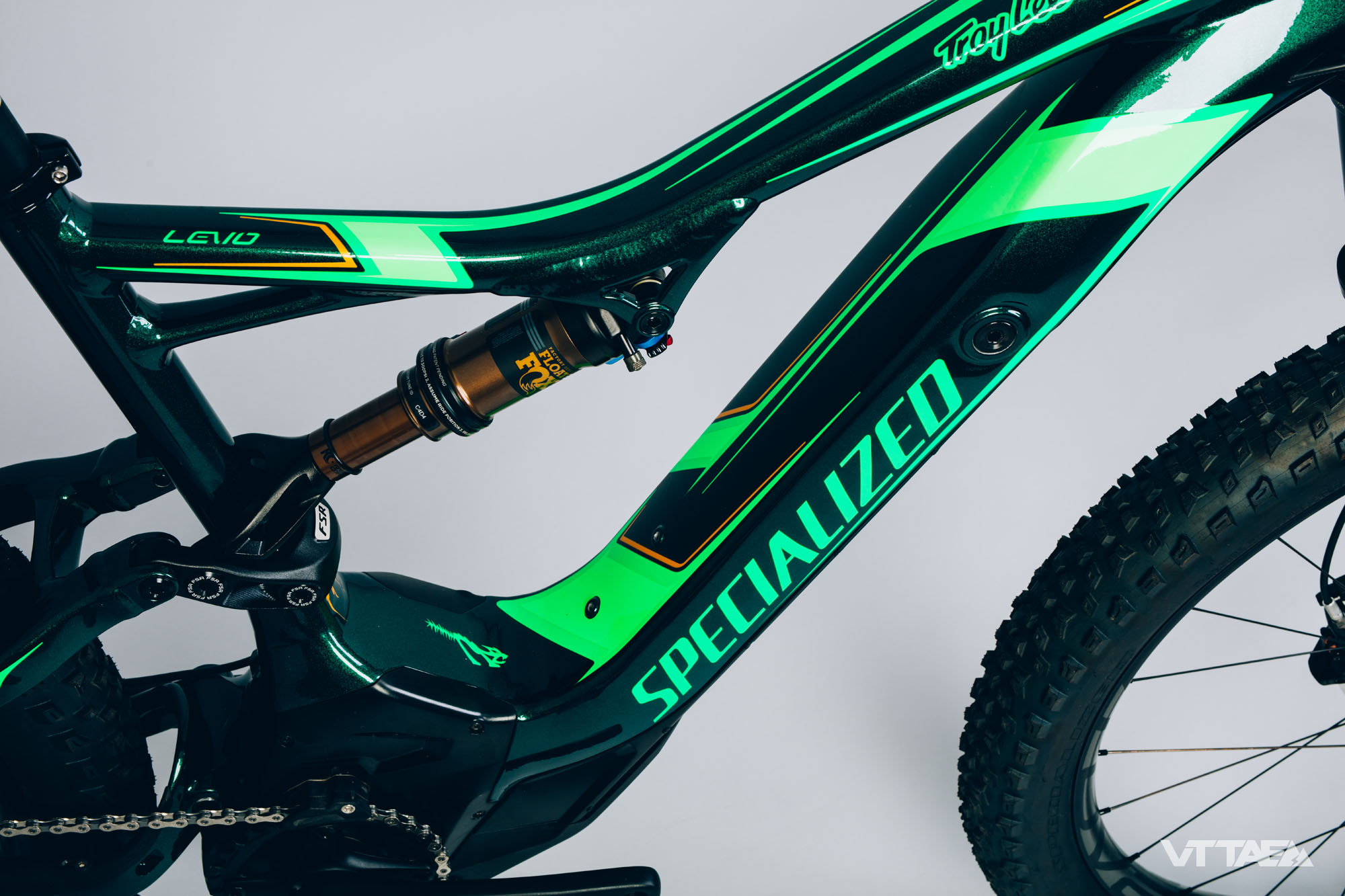 Après plusieurs collaborations en VTT classique (Enduro, Stumpjumper, Demo…) Specialized s’est une nouvelle fois associée au célèbre équipementier et painter Troy Lee Designs – dont le patron est un grand fan de VTTAE – pour proposer une série limitée du Levo FSR !