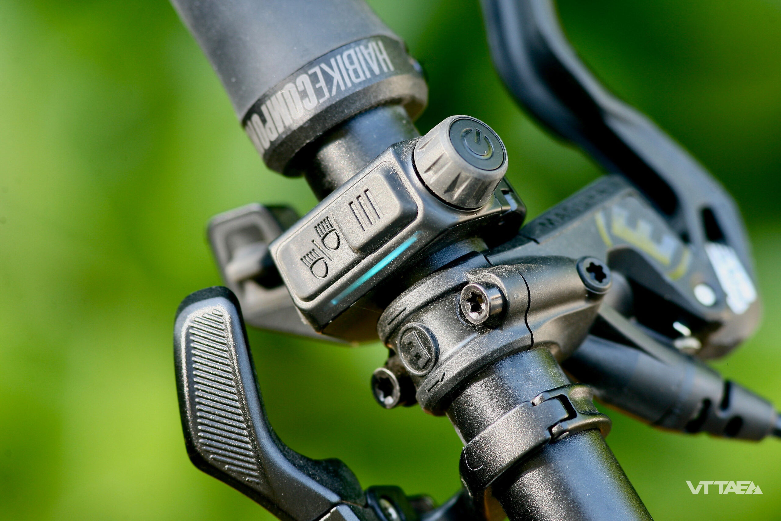 Dans l’absolu, la commande intuitive Haibike au pouce gauche est censée offrir une ergonomie parfaite, mais sur le terrain, entre les différents boutons et la gâchette de la tige de selle télescopique, on a vu mieux… De plus, elle est particulièrement sensible et nécessite donc un minimum d’habitude et de doigté pour ne pas changer de mode ou de fonction inopinément. En revanche, la bande LED de couleur (violet, bleu, vert, jaune, rouge) qui rappelle le niveau d’assistance enclenché est assez pratique.