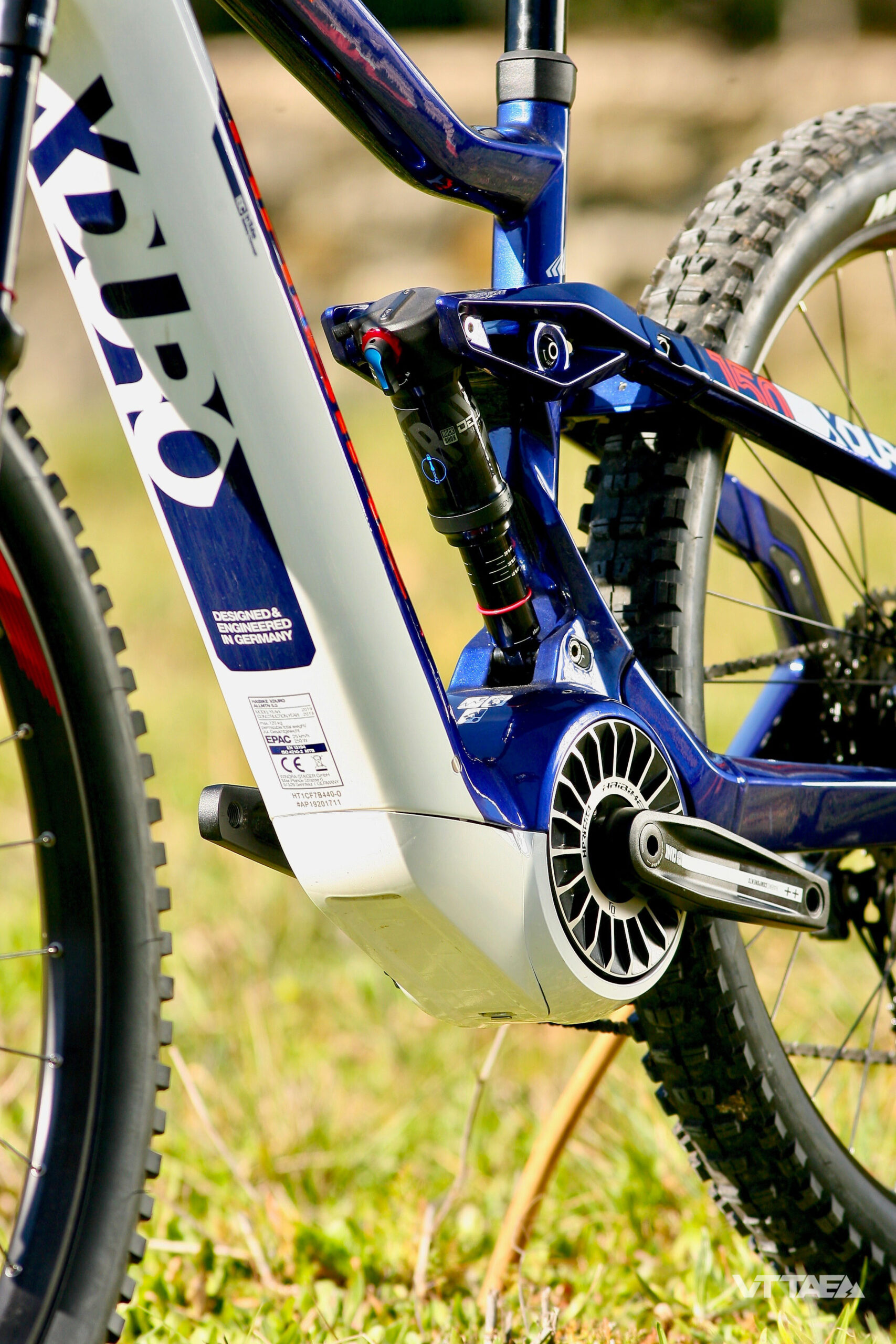 Le moteur Haibike HPR 120S a été conçu en collaboration avec la firme allemande TQ (Technology in Quality). Il assiste jusqu’à 25 km/h et dispose d’un couple constructeur annoncé à 120Nm (Newton Mètre). Grâce à son engrenage à onde de déformation spécifique, il fonctionne de manière extrêmement puissante dans les espaces les plus réduits. Sur le papier, c’est actuellement l’un des moteurs centraux les plus puissants du marché. Il est alimenté par une batterie Haibike FLYON de 630Wh, connectée magnétiquement à l’intérieur, et qui peut être verrouillée grâce à une serrure développée en collaboration avec ABUS. Pour une meilleure protection des impacts et des projections d’eau ou de boue, l’ensemble moteur/batterie dispose également d’un sabot spécifique en plastique renforcé de fibres.