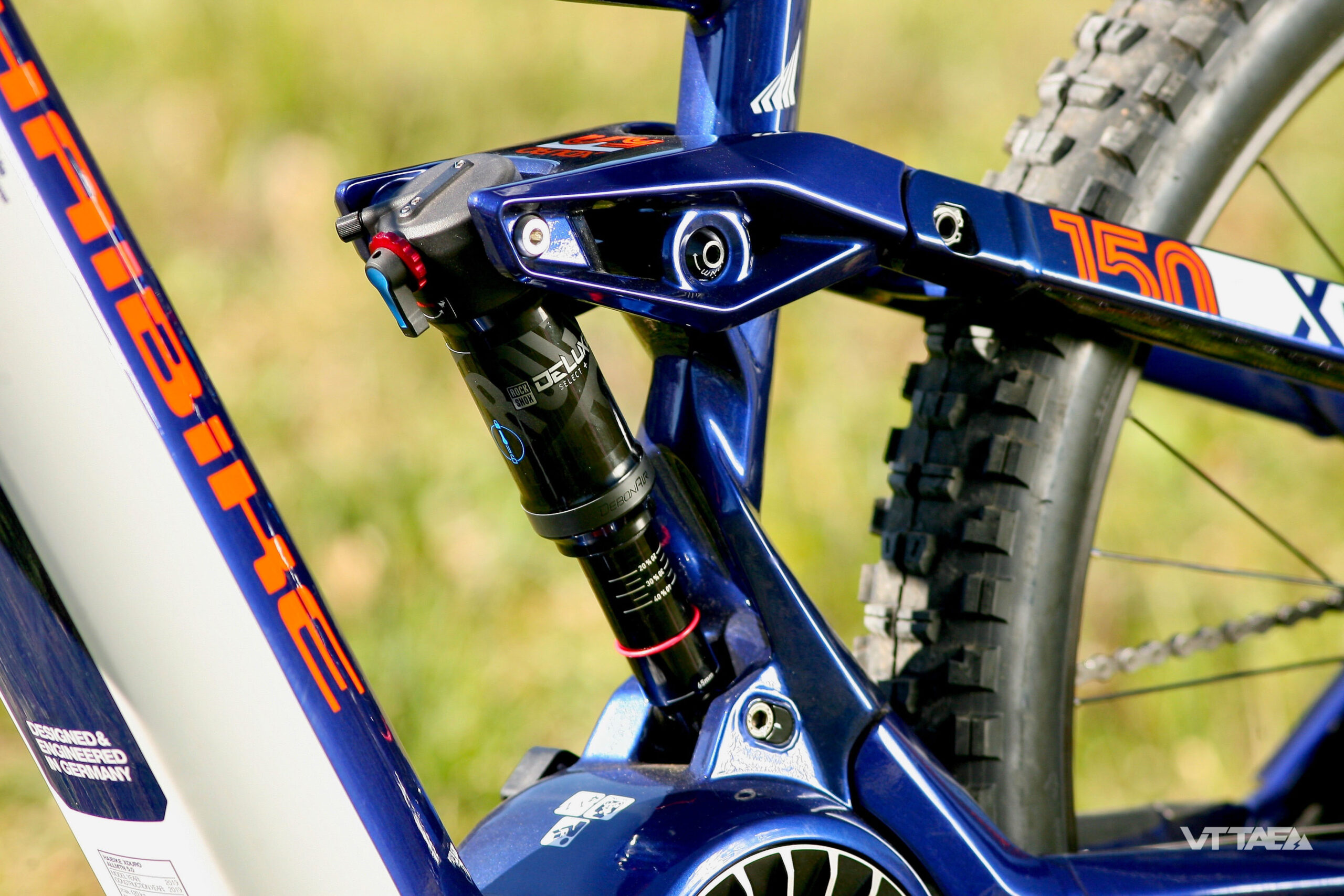 Sur un tel VTTAE, la RockShox Yari RC 150mm de débattement arrive à trouver un peu ses limites. En effet, on pourra reprocher à cette Yari un certain manque de maintien dans le débattement pour un vélo de ce gabarit. Il est ainsi relativement difficile de trouver un bon équilibre entre une suspension arrière très efficace et une fourche quand même un peu « légère » pour ce type de VTT à assistance électrique particulier… On imagine que le modèle 8.0 qui est équipé d’une Fox 36 plus rigide doit se comporter bien mieux, tout en proposant davantage de possibilités de réglages. Au niveau de la suspension arrière, on constate un léger manque d’onctuosité sur les petits chocs… Les settings d’origine sont un peu fermes, mais encore une fois, vu le poids plus élevé du vélo, il faut bien trouver un compromis. Heureusement, le montage de la roue arrière en 27,5+ permet de compenser légèrement le manque de sensibilité de l’amortisseur en baissant davantage la pression et d’obtenir ainsi une motricité acceptable. Attention quand même pour les plus de 80 kilos : ne pas descendre en-dessous de 1,5 bar !