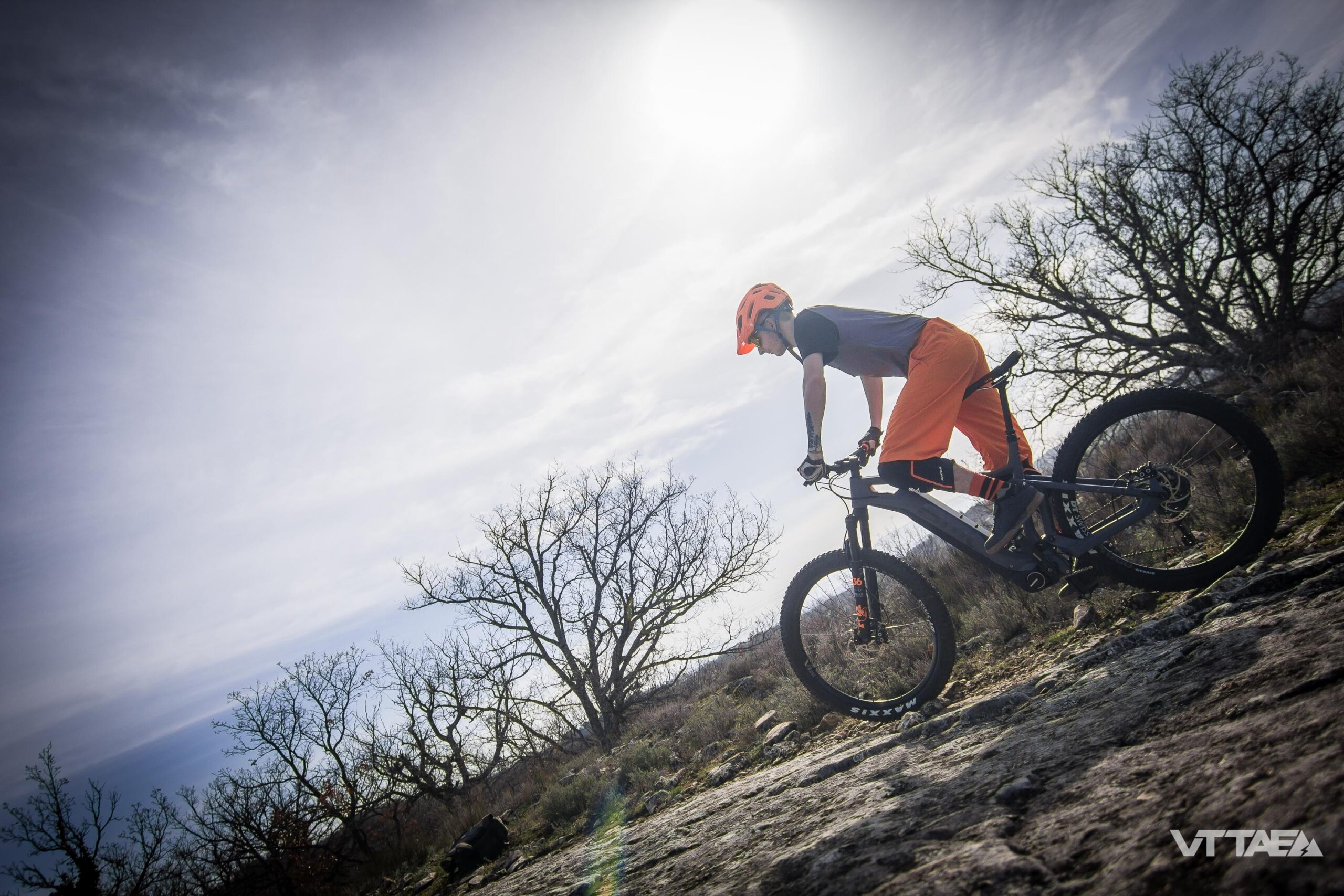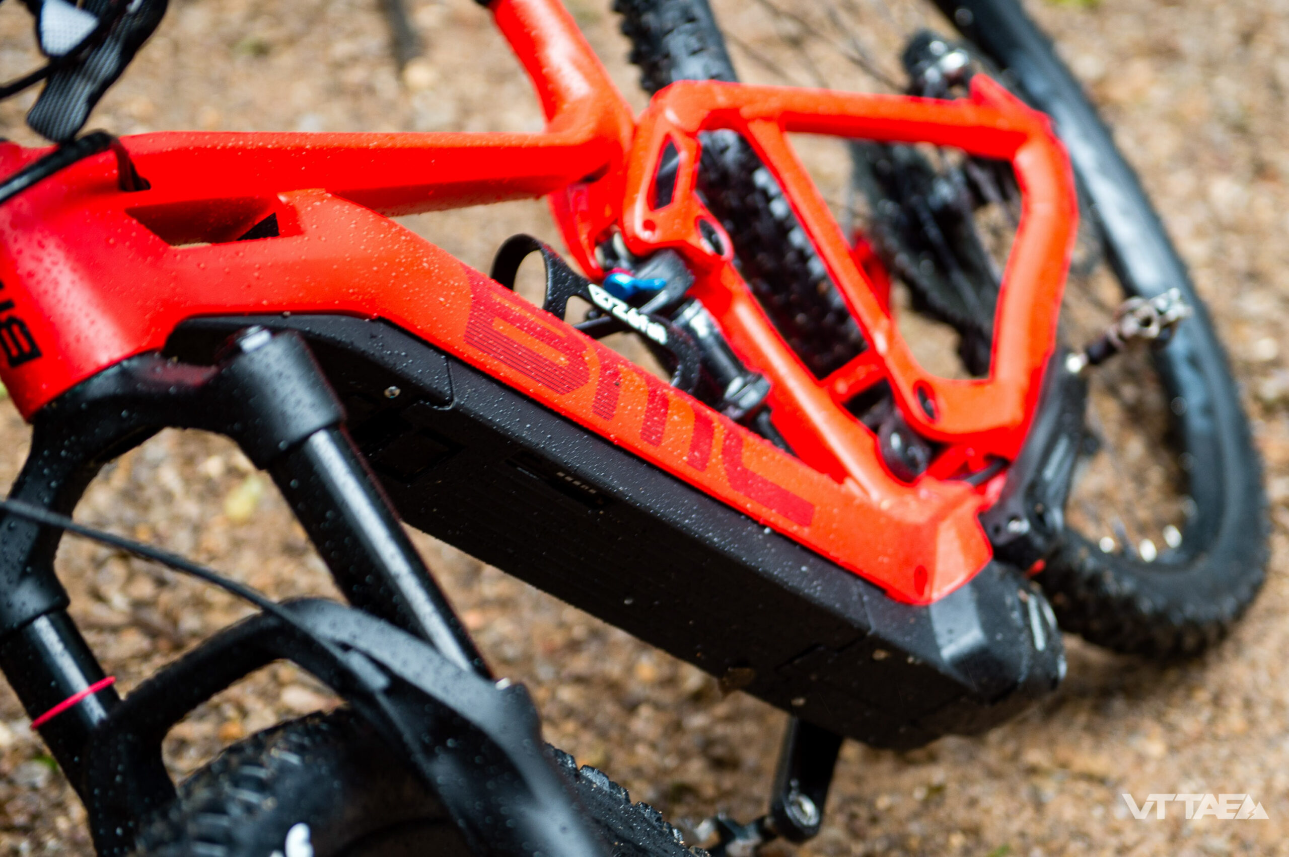 La suspension arrière reste haut dans le débattement. Ça peut avoir pour effet de déporter le poids du pilote sur l’avant du vélo. Seulement si la suspension avant est elle-même mal réglée. Et d’autant plus puisque le poids de la batterie intégrée au tube oblique pèse sur l’avant du vélo, comme on le met de plus en plus en évidence au fur et à mesure de nos essais VTTAE.