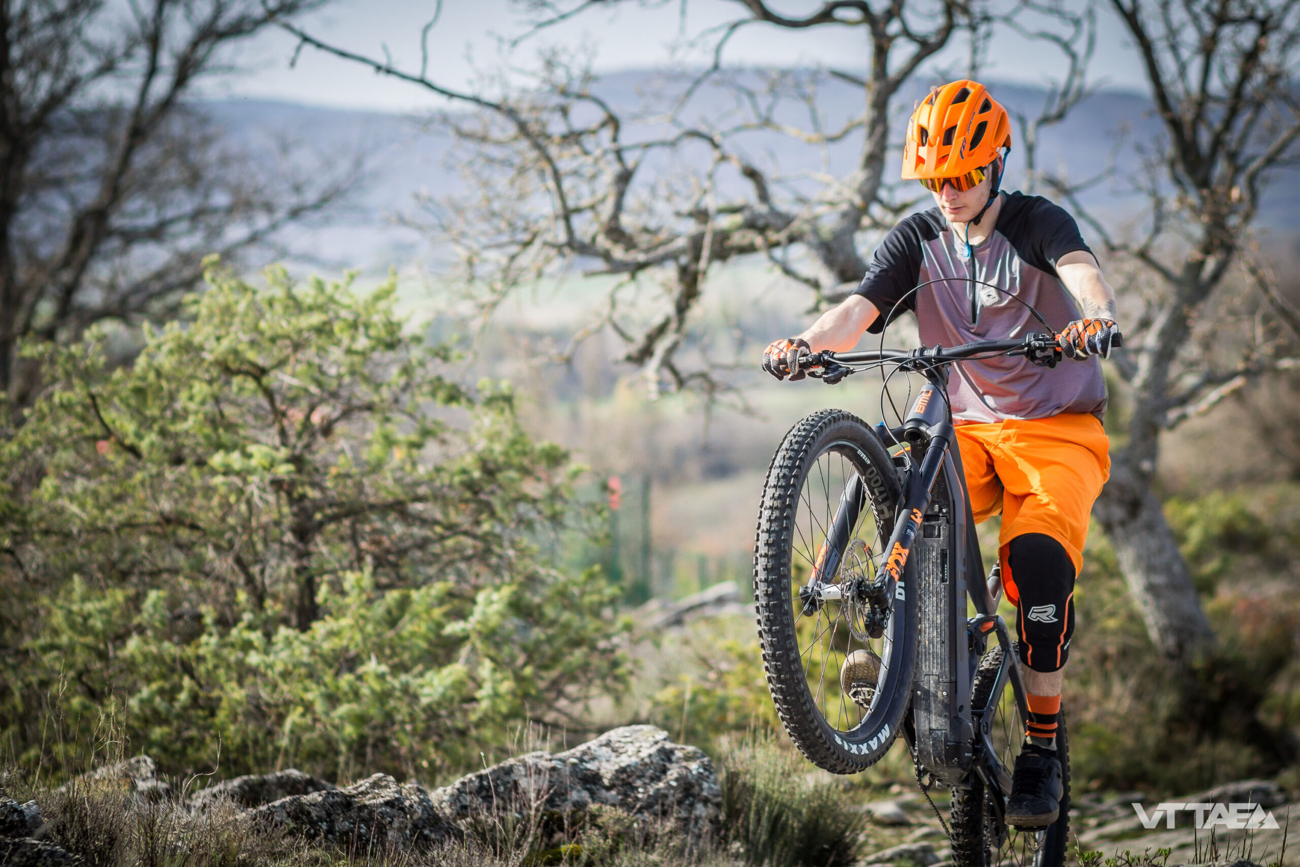 J’entends par là : à basse vitesse. Tant que l’on progresse sous les 15km/h. Que ce soit sur un sentier escarpé qui mène au départ d’une descente toute aussi trialisante. Ou bien entre les arbres d’un bosquet où chacun a eu la bonne idée de pousser sur l’autre, ou presque.