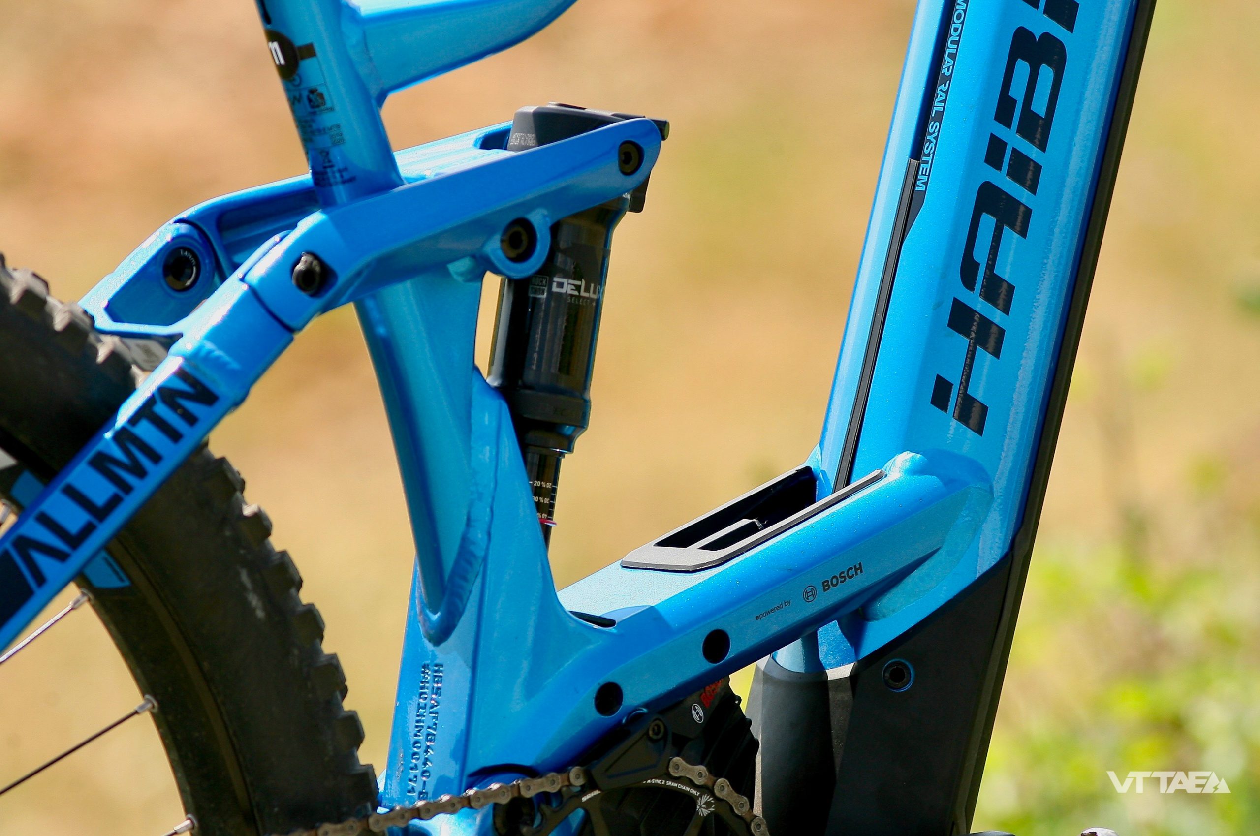 En effet, le cadre en aluminium 6061 de ce nouveau VTTAE est doté d’une architecture originale qui vise à baisser au maximum le centre de gravité en inclinant le moteur à 42° et ainsi pouvoir positionner la batterie intégrée le plus bas possible devant le moteur et non au-dessus.