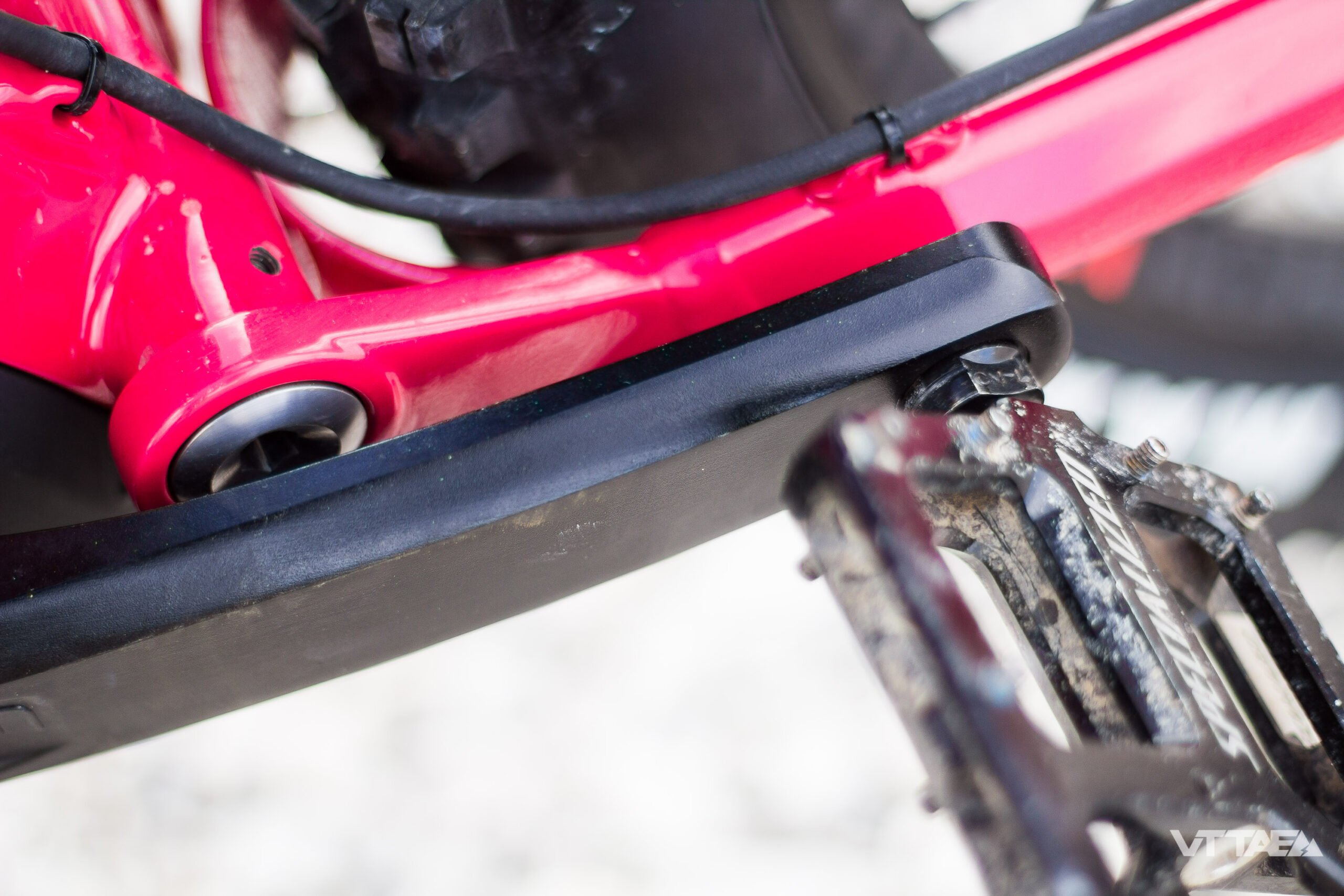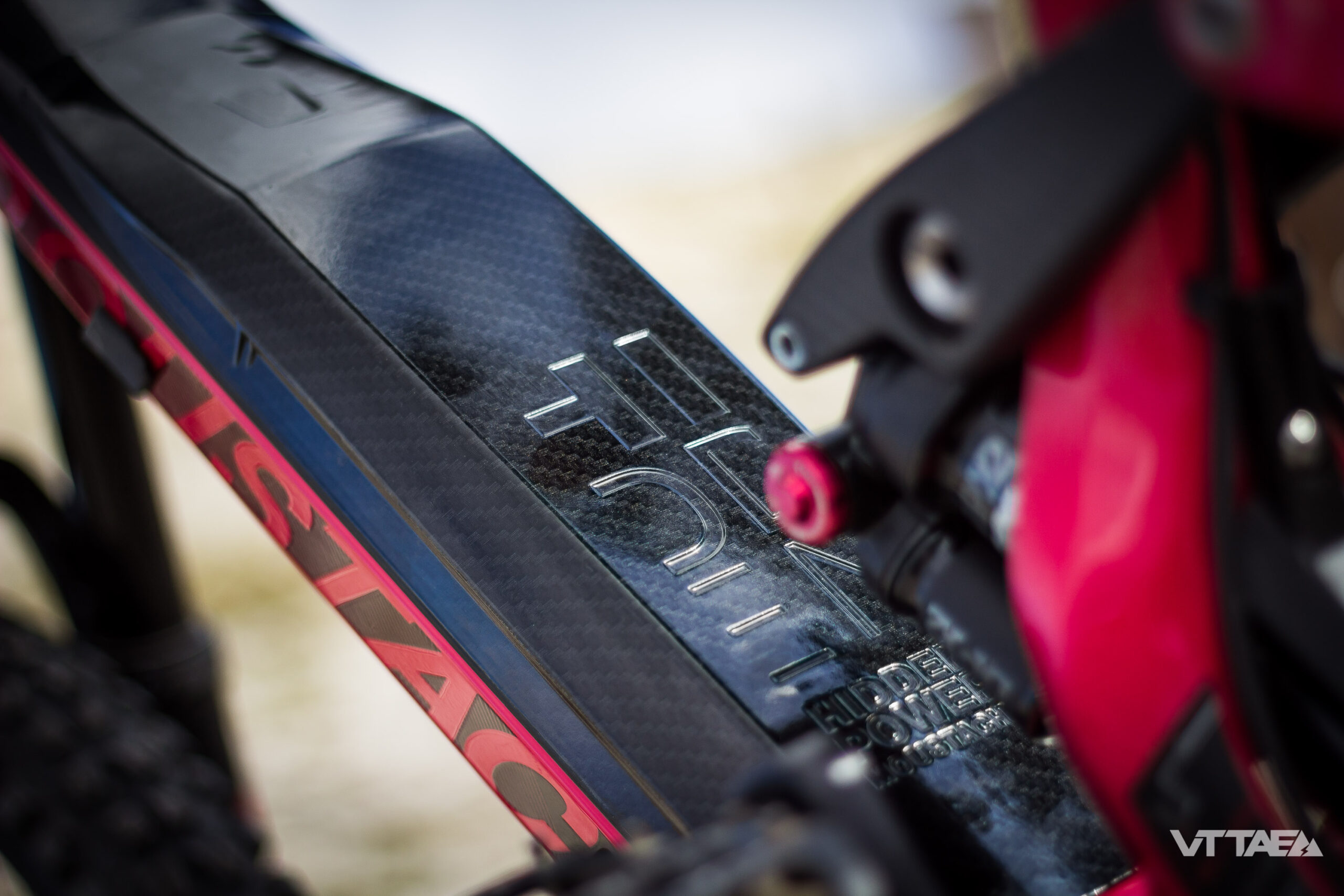 Mais, je n’adhère pas du tout sur la fausse fibre de carbone du cache batterie. Surprenant choix. Au même titre que je préférai les décorations mono couleurs de 2017 beaucoup plus soft (sans le traitement noir brillant à l’intérieur du cadre et sur le cache batterie). Ceci est évidemment très subjectif 😀