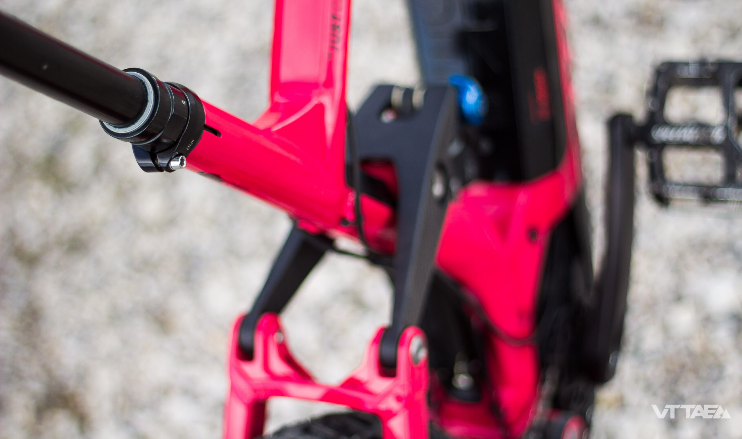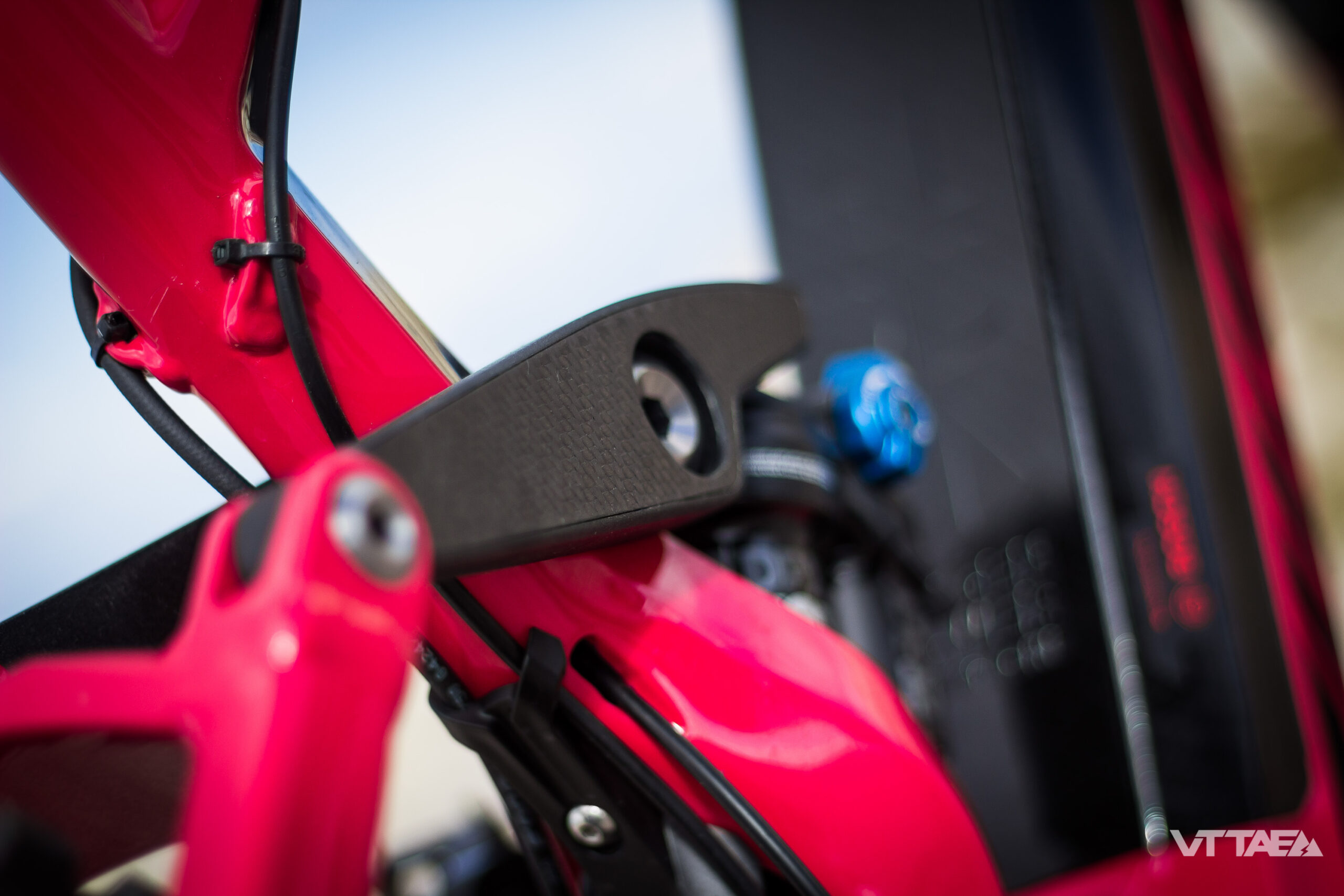 Je crois voir un nouveau cache amortisseur qui intègre très proprement le passage des gaines (différent de mon 2017 en tous cas). Toujours aussi bien léchée, la finition Moustache. A la hauteur de la robustesse de la marque.