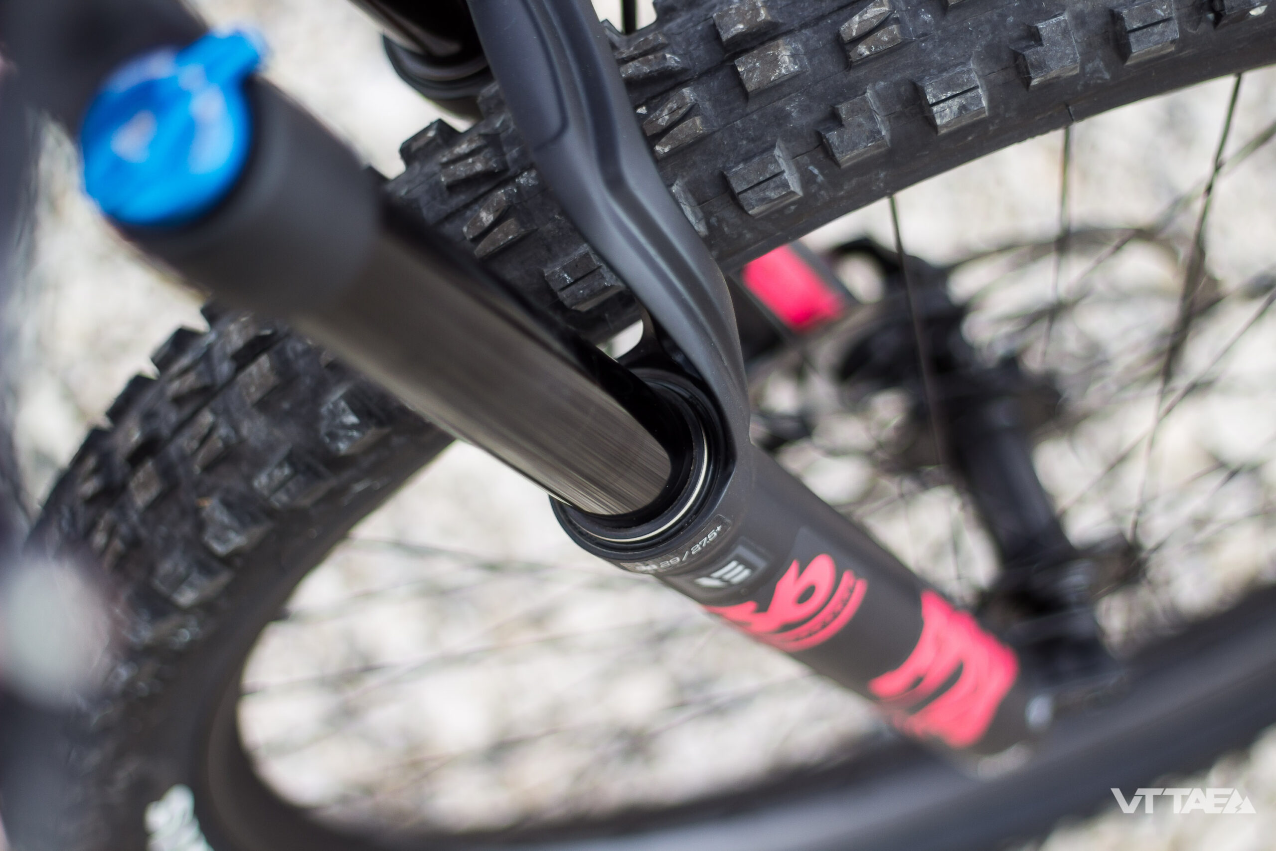À l’avant, il semble bien que le centimètre de débattement et de hauteur apporté par la Fox 36 désormais en 170mm soit bénéfique. En premier lieu, il rend vraiment aisé l’ajustement du SAG : 25 à 30%, sans avoir à être très précis pour éviter de plonger au freinage ou dans la pente…