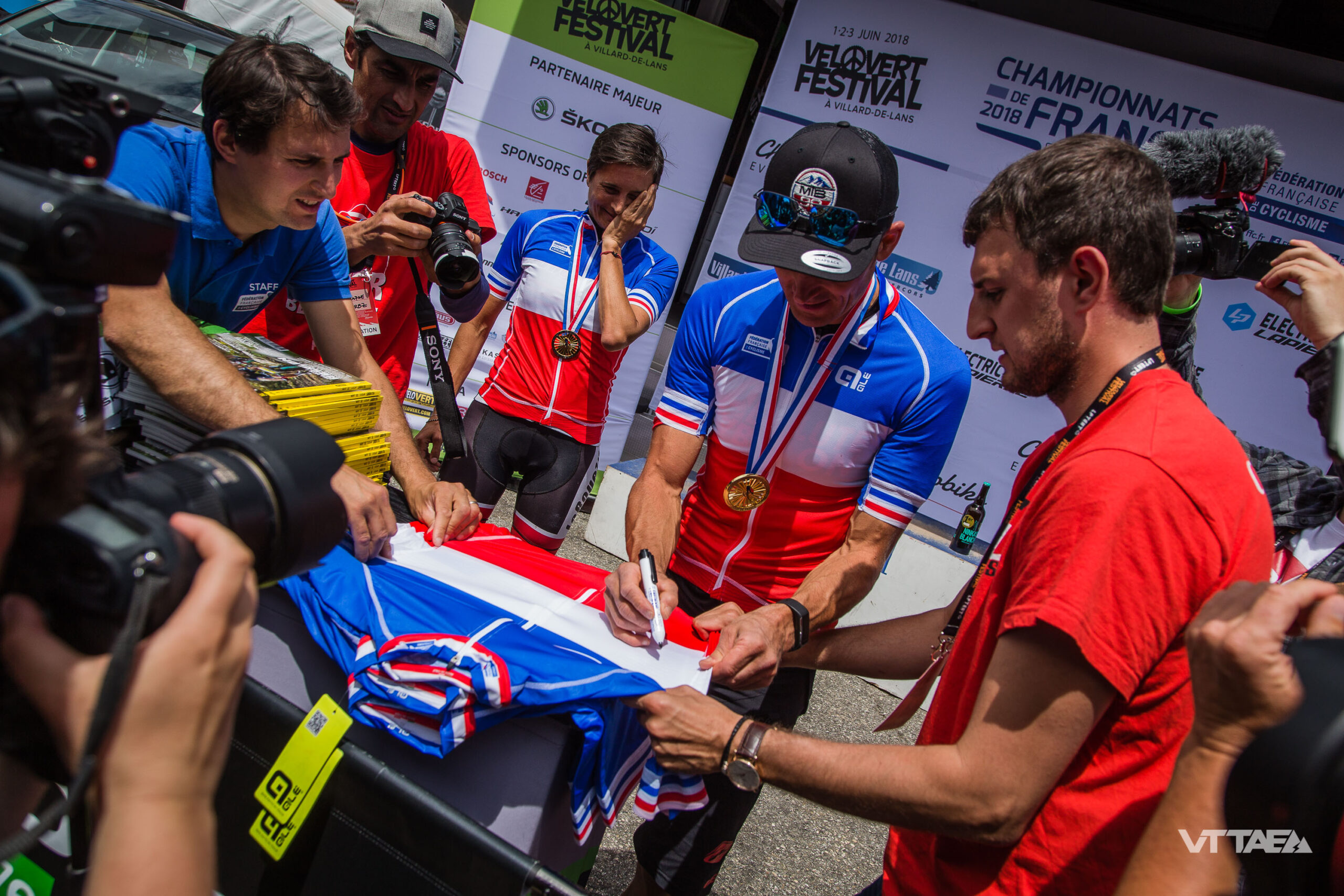 Nadine Sapin et VTTAE.fr en bleu blanc rouge