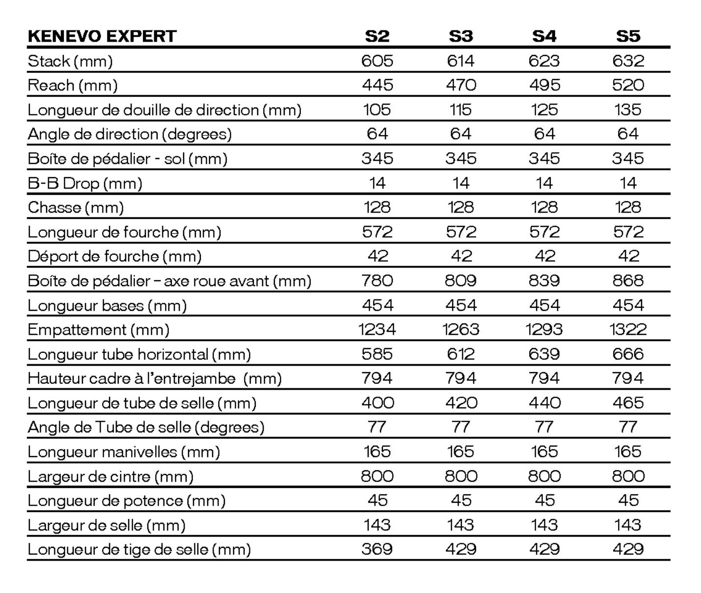 - Reach de 495mm en taille S4, offset 42mm