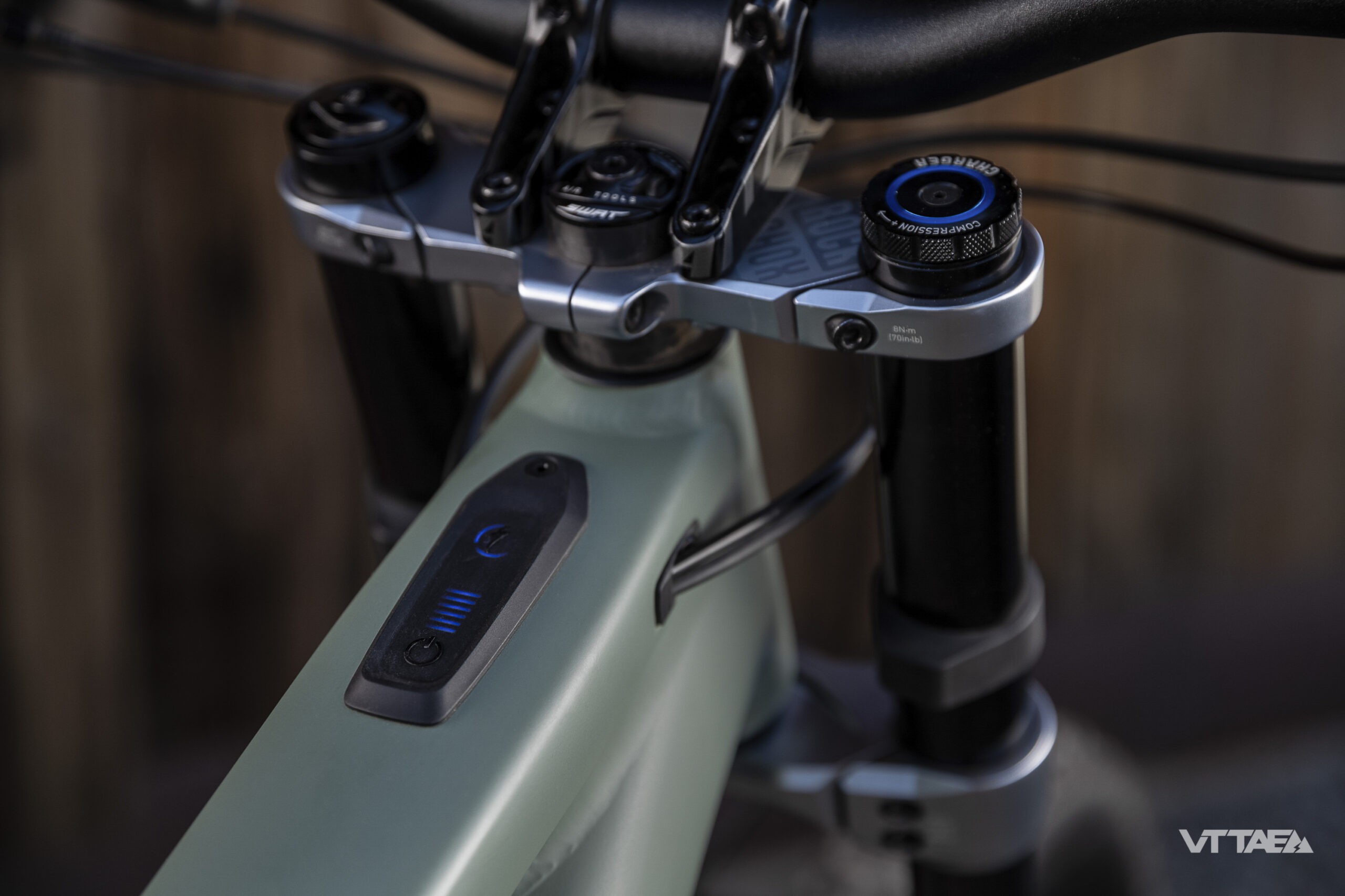 Esthétiquement c’est plutôt réussi (finalement), à y regarder de plus près et sous différents angles. C’est complètement atypique, la fourche double té peut faire son effet de char d’assaut, et c’est non sans rappeler d’ailleurs une déclinaison du Cannondale Moterra. Une nouvelle tendance se profile ?!