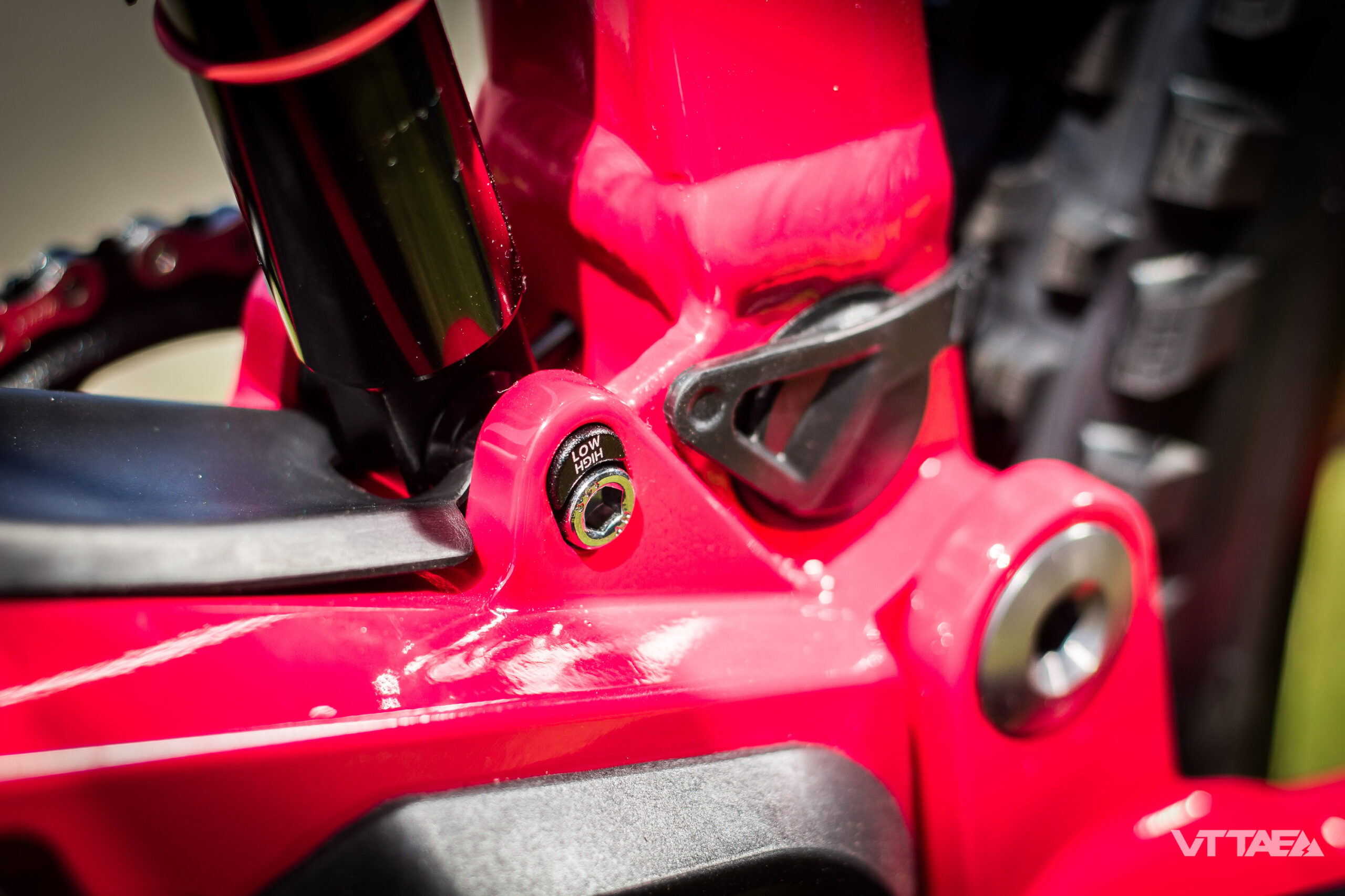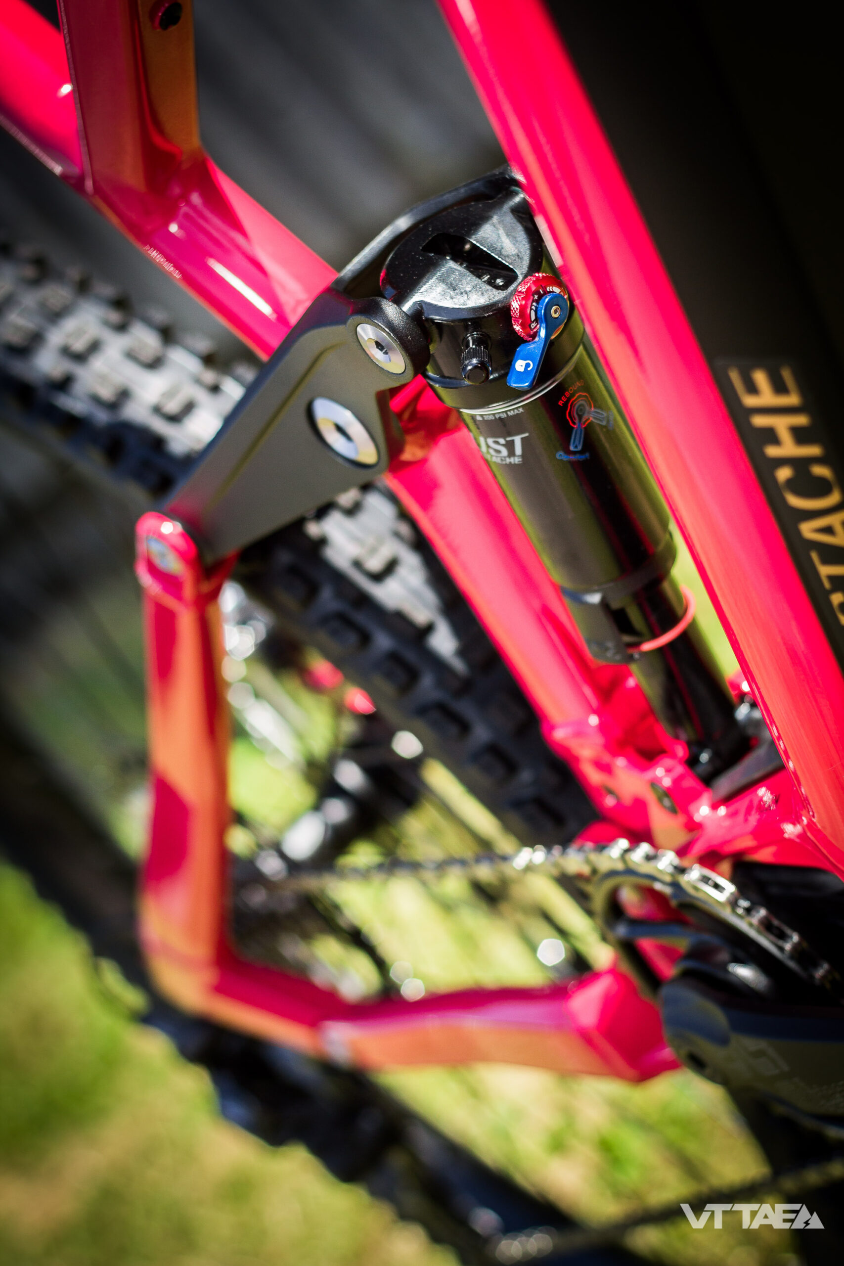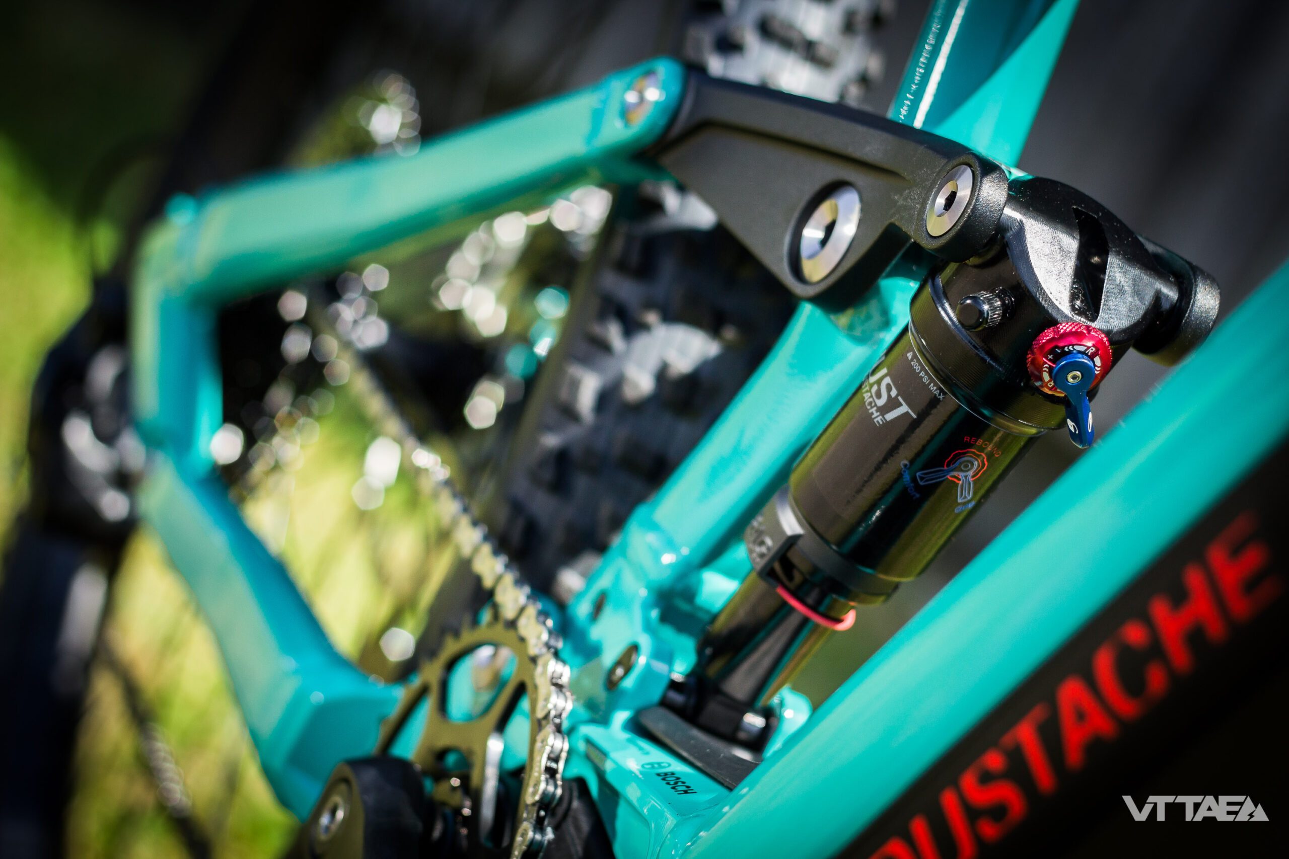 Une attention particulière renforcée par les derniers développements de l’amortisseur Moustache. Toujours doté de son travail soigné sur les détentes hautes et basses vitesses, il adopte aussi, désormais, un volume d’air plus important via une tête trunnion spécifique…
