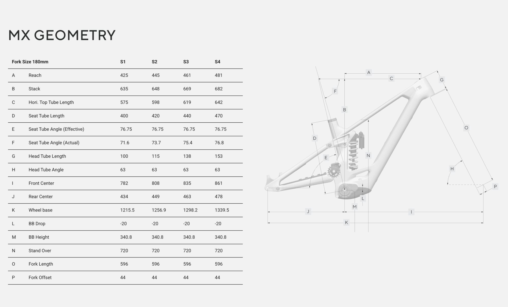 • Reach 445 mm et Stack 648 mm en taille S2, offset (déport de fourche) 44 mm